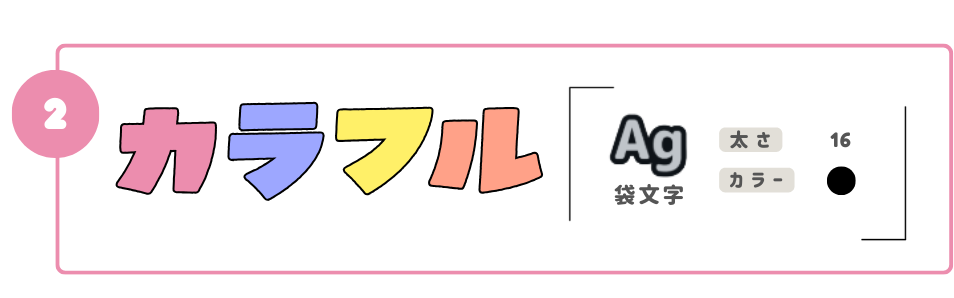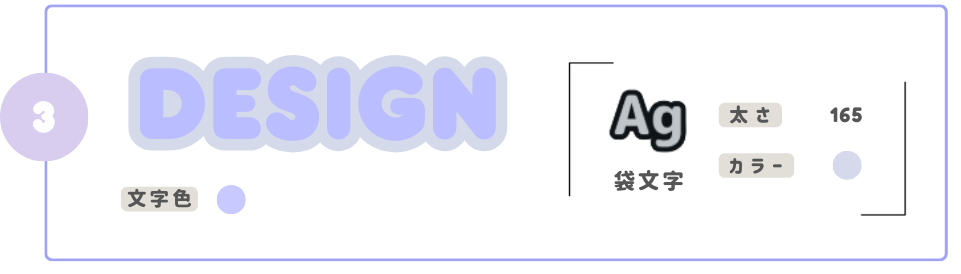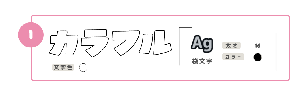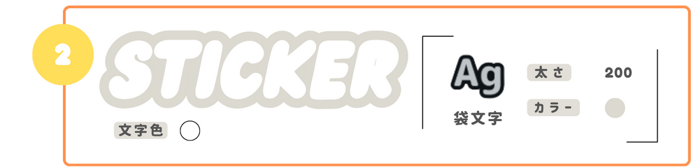 ①よりも少しだけ袋文字の太さを上げて、グレーにするだけ!