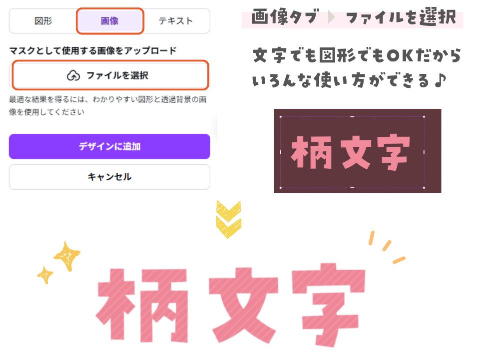 2回目のCanva tipsでは、簡単にできる柄文字の作り方をご紹介いたしました。
