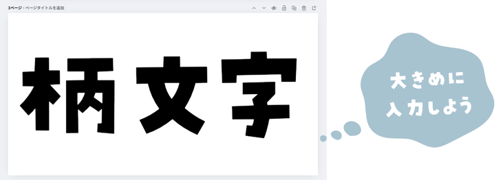 白いページの上に好きなテキストを黒で入力します。この黒い部分が柄になるよ。