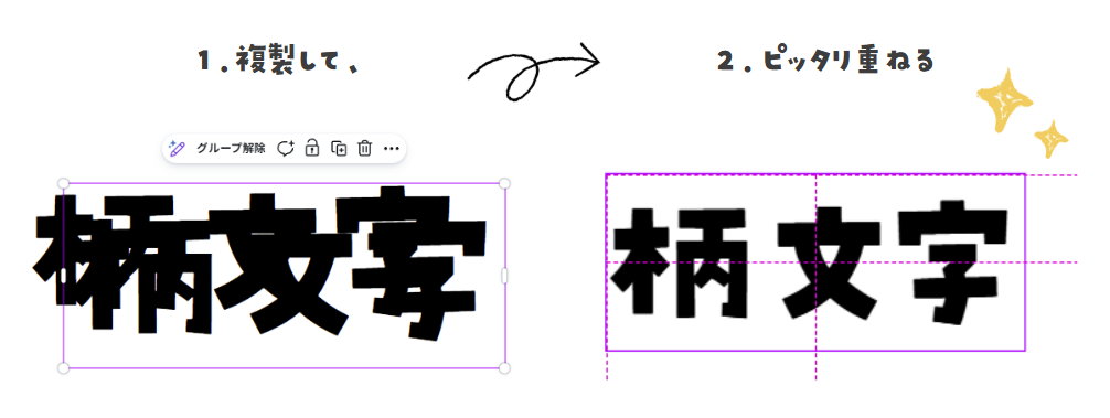 2-1.文字をCtrl+Dで複製し、ぴったり重ねます。