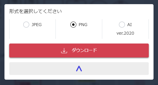 終わると、ダウンロードボタンが出てくるのでPNGを選んでダウンロード。