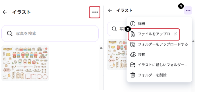 アップロードの中にある、フォルダーから今回の例ではイラストを選択。