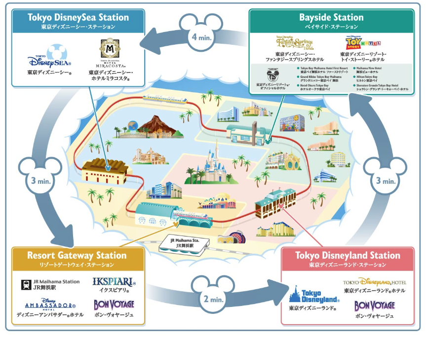 舞浜駅にあるディズニーリゾートステーションからリゾートラインで約5分です。