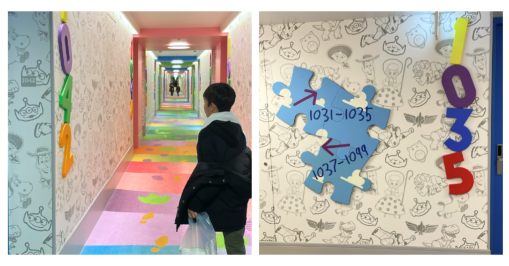 ちなみにエレベーターを降りたとろも、部屋に続く廊下もすべてが可愛く、360度どこを見ても最高のフォトスポットだらけ。